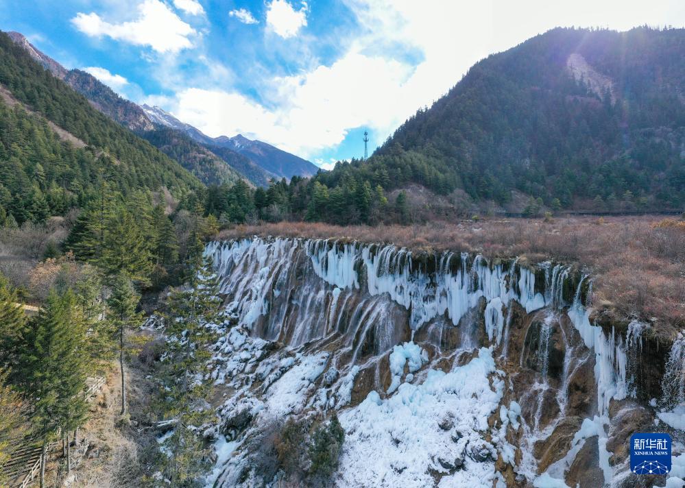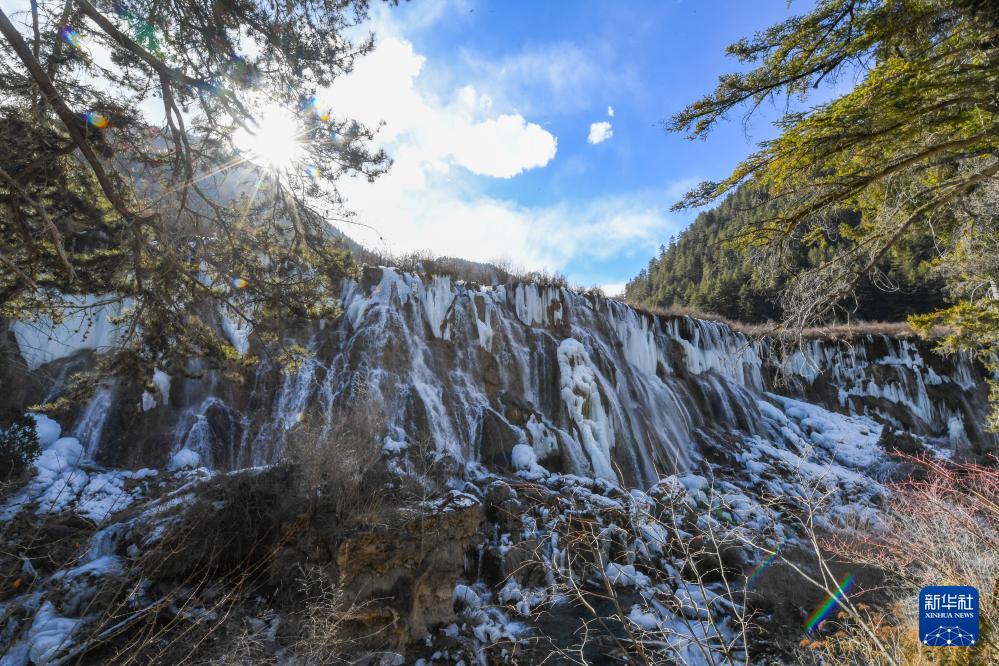 ??這是1月4日在四川省九寨溝風(fēng)景名勝區(qū)拍攝的諾日朗瀑布形成的冰瀑景觀。新華社記者 王曦 攝