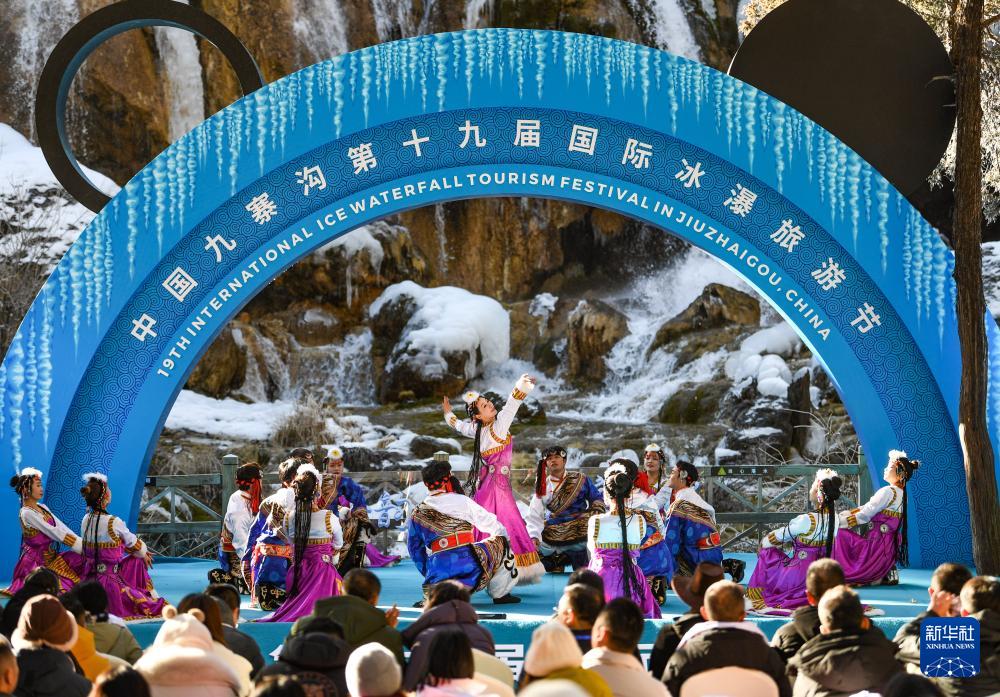 ??1月4日,演員在中國(guó)九寨溝第十九屆國(guó)際冰瀑旅游節(jié)開(kāi)幕式上表演。新華社記者 王曦 攝