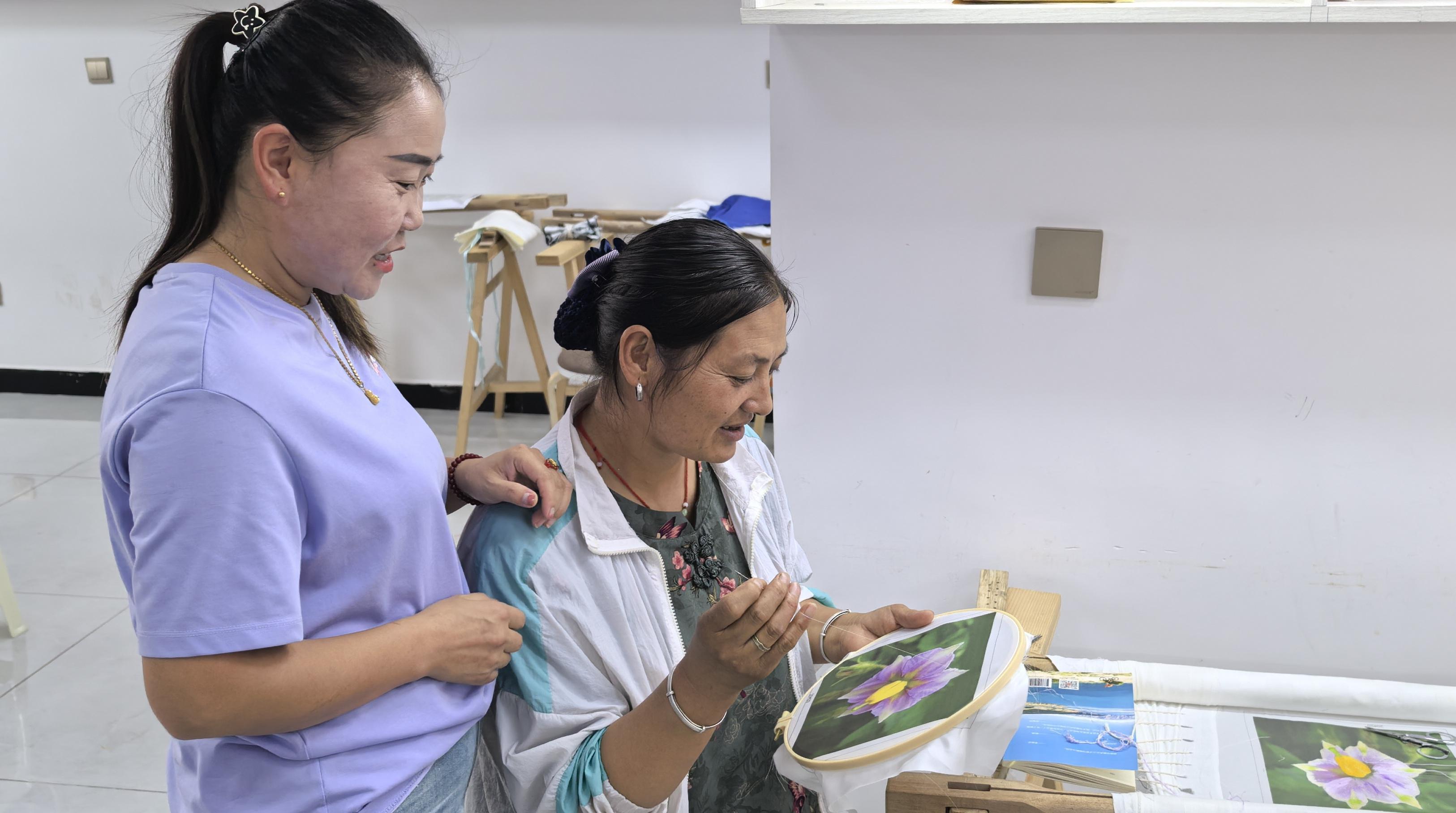 楊拉青吉一邊學(xué)著勾線一邊說:“學(xué)刺繡快一年了,雖然手藝還不夠精湛,但去年也掙了4000多元?,F(xiàn)在搬進(jìn)小區(qū),掙錢、顧家兩不誤。各民族鄰里姐妹聚在一起繡刺繡,既能相互幫助提高技藝、交流感情,還能通過手藝掙錢貼補(bǔ)家用,心里真的很高興?!?/p>