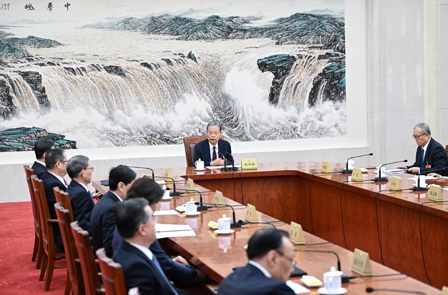 3月4日上午,十四屆全國人大常委會在北京人民大會堂舉行第四十一次委員長會議。趙樂際委員長主持會議。新華社記者 張領(lǐng) 攝