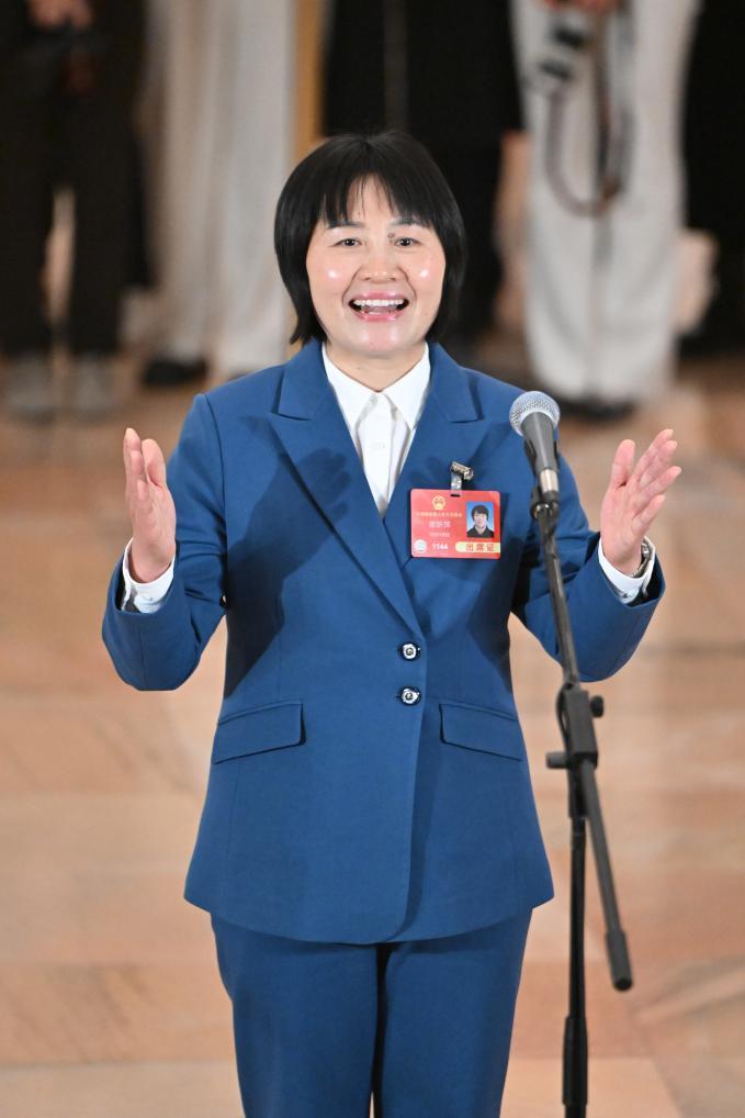 3月11日,第十四屆全國人民代表大會(huì)第三次會(huì)議第三場“代表通道”集中采訪活動(dòng)在北京人民大會(huì)堂舉行。這是全國人大代表譚新萍接受媒體采訪。新華社記者 胥冰潔 攝