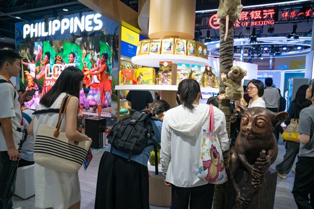 9月10日,在服貿(mào)會(huì)主題展菲律賓館,參觀者在了解菲律賓商品。新華社記者 丁赫 攝