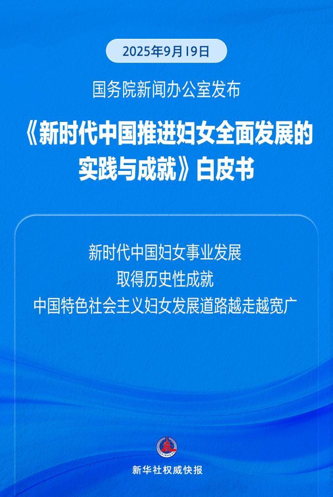新華社北京9月19日電(記者董博婷、孫少龍)國務院新聞辦公室19日發(fā)布《新時代中國推進婦女全面發(fā)展的實踐與成就》白皮書。