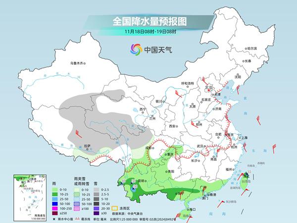 中央氣象臺(tái)預(yù)計(jì),今天,新疆南疆盆地、西藏北部和東部、青海南部和西部、甘肅河西、川西高原北部等地部分地區(qū)有小雪或雨夾雪。西南地區(qū)東部和南部、華南大部、臺(tái)灣島等地部分地區(qū)有小到中雨,其中,云南西南部、臺(tái)灣島北部等地部分地區(qū)有大雨。