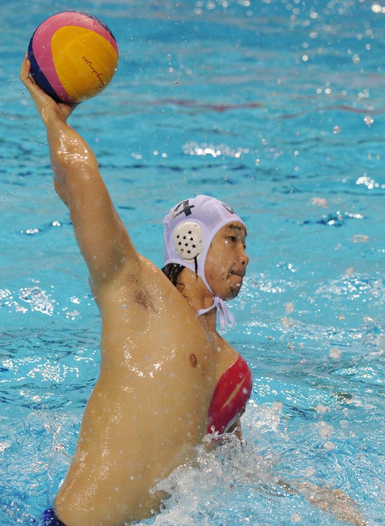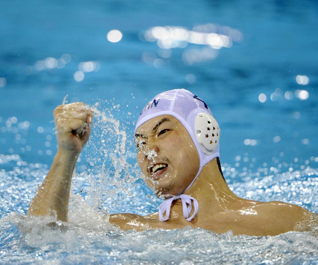 2010年11月24日,中國隊(duì)球員余利君在廣州亞運(yùn)會(huì)水球男子半決賽中。中國隊(duì)最終獲得亞軍。新華社記者 呂小煒 攝