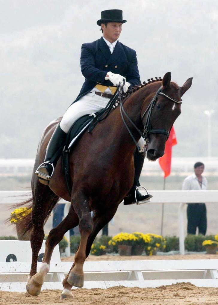 1997年10月13日,劉忠在第八屆全國運(yùn)動(dòng)會(huì)馬術(shù)比賽盛裝舞步個(gè)人賽冠軍。新華社記者 張劉仁 攝