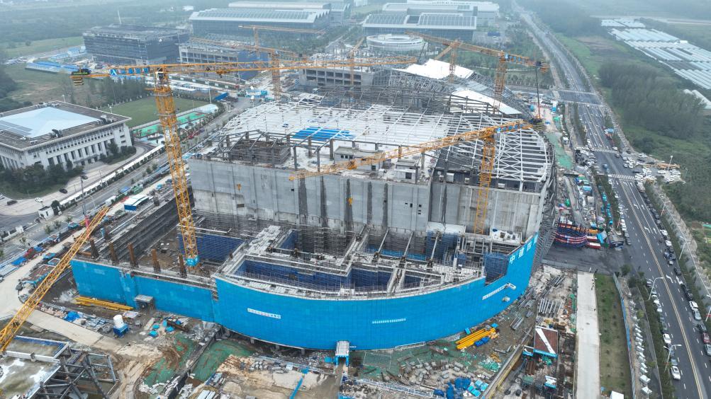 2025年10月1日拍攝的緊湊型聚變能實(shí)驗(yàn)裝置(BEST)建設(shè)現(xiàn)場(chǎng)(無(wú)人機(jī)照片)。新華社記者 周牧 攝