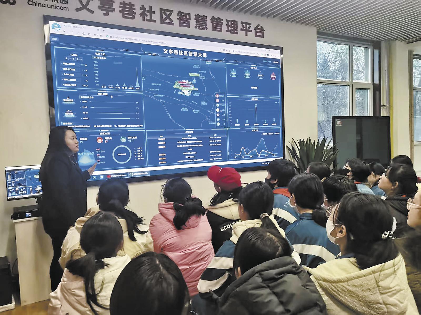 工作人員給孩子們講解社區(qū)智慧管理平臺(tái)功能。西寧市文亭巷社區(qū)供圖