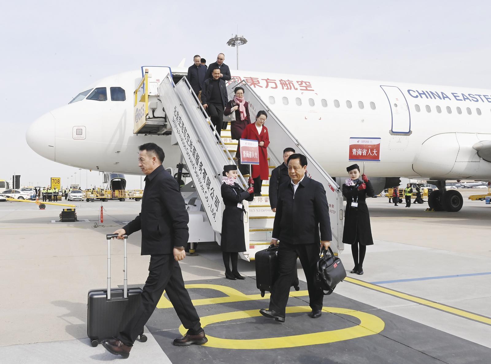 3月3日,出席十四屆全國人大三次會(huì)議的青海代表團(tuán)抵達(dá)北京,踏上履職新征程。記者 張地委 攝