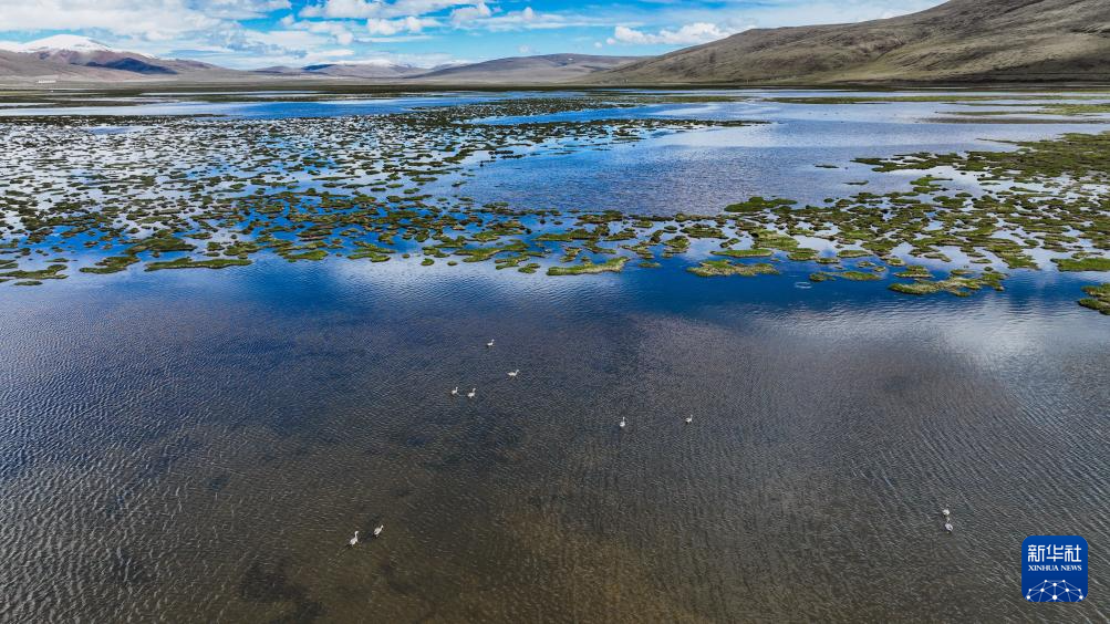 這是6月4日在青海隆寶國家級自然保護(hù)區(qū)拍攝的斑頭雁(無人機(jī)照片)。新華社 杜笑微 攝