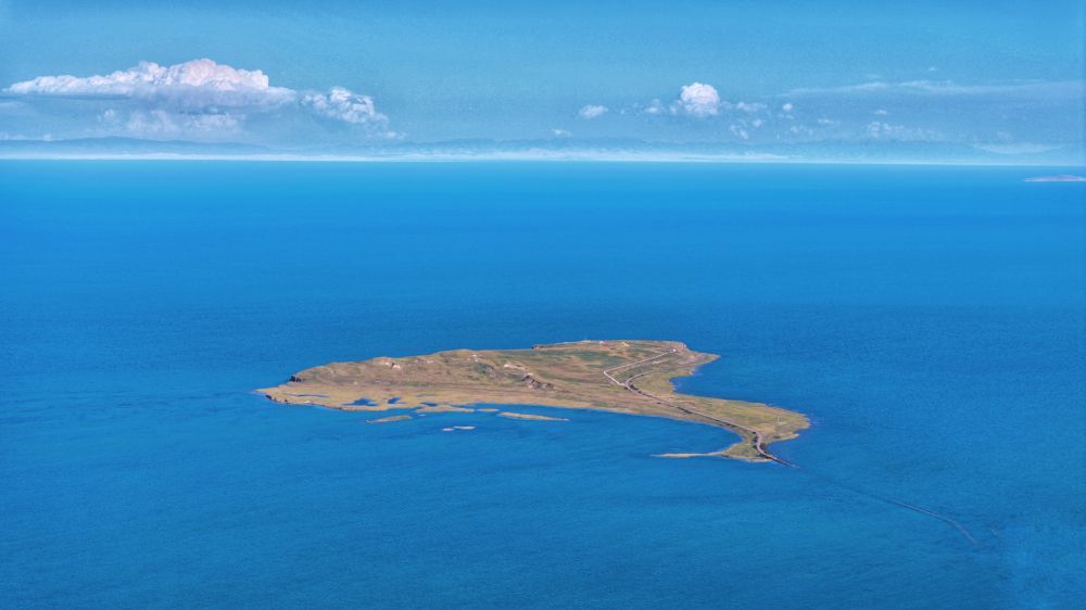 在青海省海北藏族自治州剛察縣拍攝的青海湖(無(wú)人機(jī)照片)。新華社記者 白瑪央措 攝