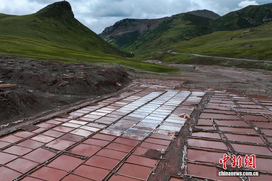 8月22日,航拍位于青海省玉樹藏族自治州囊謙縣的白扎鹽場秋日景色。擁有上千年歷史的白扎鹽場至今仍沿襲著古老的曬鹽、制鹽方式,所生產(chǎn)的食鹽暢銷西藏、四川、甘肅等省區(qū)。