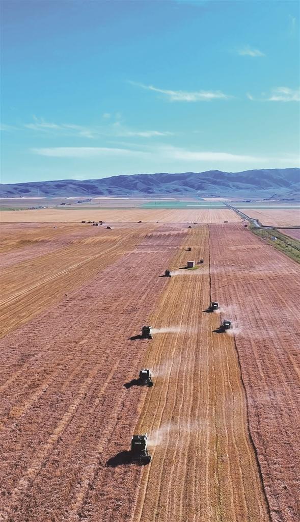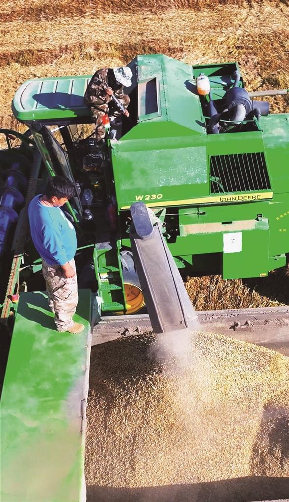 貴南縣青稞實(shí)現(xiàn)機(jī)械化收割。