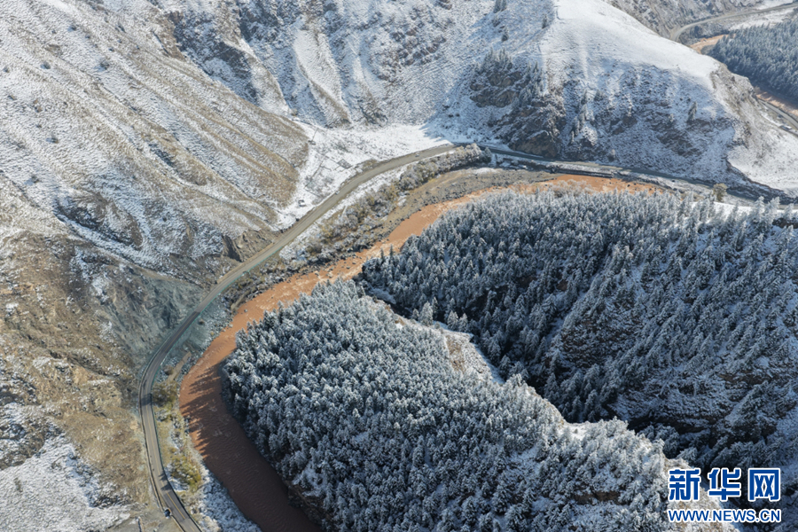 航拍雪后祁連9號公路沿線黑河峽谷風(fēng)光。安雪姣 攝