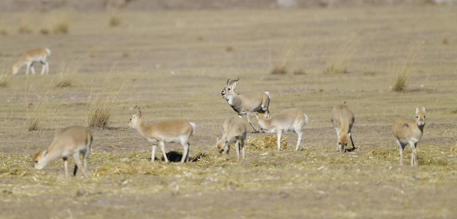 1月9日,記者途經(jīng)海北藏族自治州剛察縣哈爾蓋鎮(zhèn)時,在公路沿線偶遇成群的普氏原羚。它們時而追逐嬉戲,時而隱于避風(fēng)的灌木叢下休憩,還有的正低頭專心覓食,為遼闊的冬日荒原平添了幾許生機與靈動。