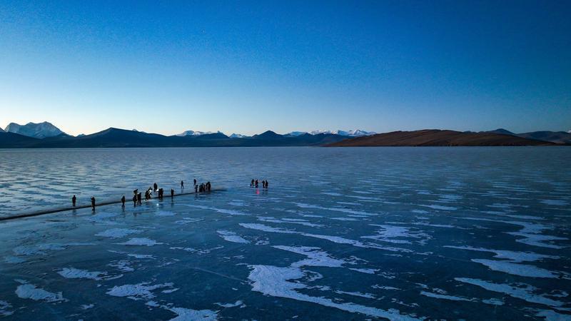 推瓦村位于山南市浪卡子縣打隆鎮(zhèn),海拔超過5000米,是世界海拔最高行政村之一,這個(gè)遺世獨(dú)立的小村莊,就坐落在風(fēng)景絕美的普莫雍措湖畔。普莫雍措被譽(yù)為“仙女之淚”“中國的貝加爾湖”,每年冬季,湖面結(jié)冰,冰面通透可見湖底,在陽光的照射下,呈現(xiàn)出動(dòng)人心魄的藍(lán)冰。而此時(shí),也是推瓦村羊群轉(zhuǎn)場的最佳時(shí)節(jié)。