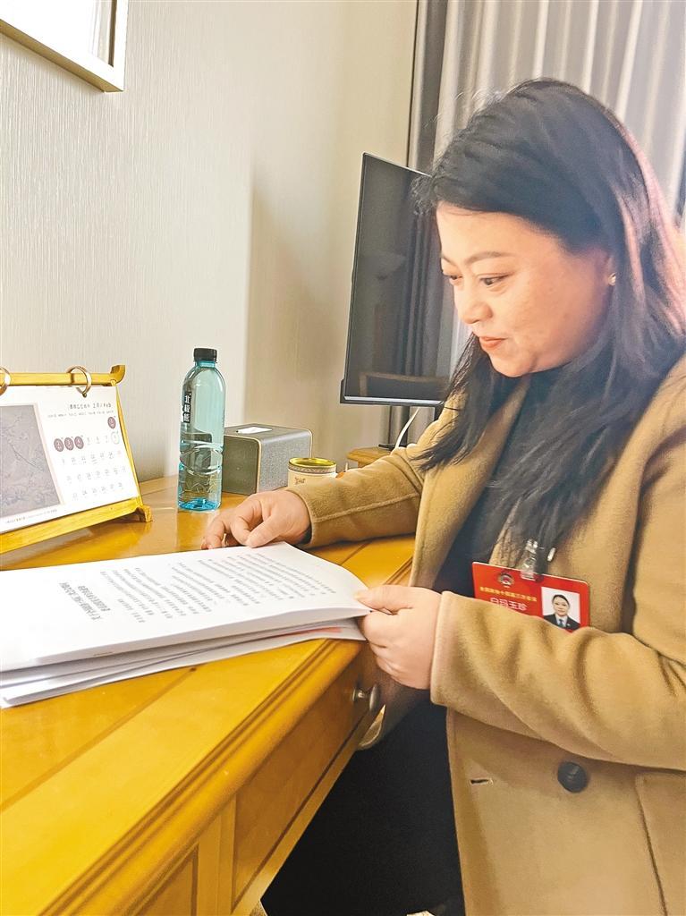 白瑪玉珍在整理履職交流材料。本報(bào)記者 丹增平措 攝