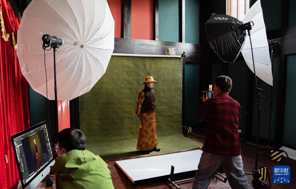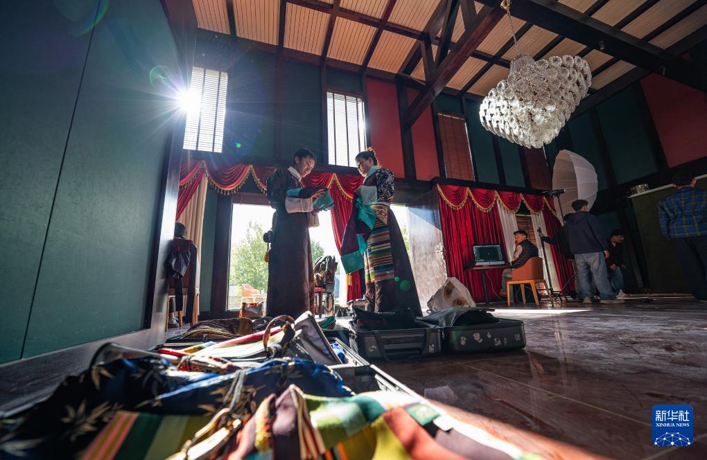 班珠丹塔身著藏裝進(jìn)行棚拍(9月9日攝)。新華社記者 丁增尼達(dá) 攝