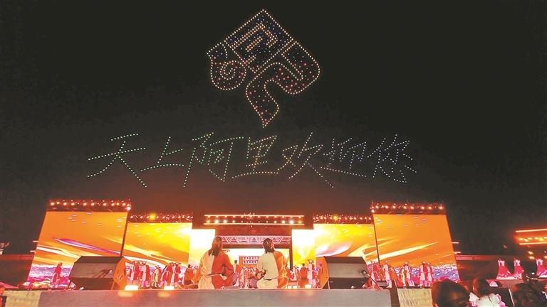 第九屆象雄文化旅游節(jié)開幕式上的無人機表演。