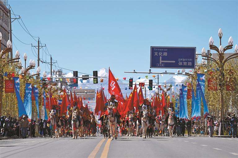群眾巡游活動接力上演,將節(jié)慶的熱鬧氛圍推向新高潮。15支巡游方隊從建設(shè)大街出發(fā),一路綿延至獅泉河體育場,各族群眾身著節(jié)日盛裝,手持彩綢、花束,伴隨著歡快的音樂翩翩起舞,勾勒出一幅民族團結(jié)、其樂融融的生動圖景。