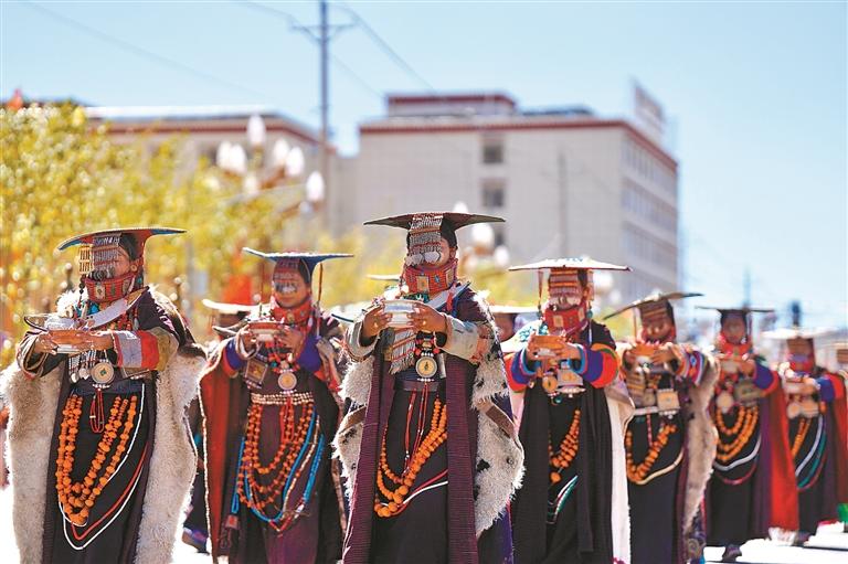 群眾巡游活動中普蘭縣方隊風(fēng)采。