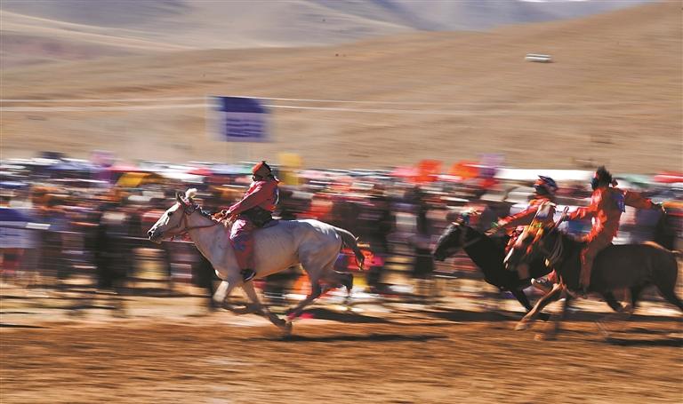 作為自治區(qū)級非物質(zhì)文化遺產(chǎn)的“噶爾恰青”賽馬活動,在噶爾縣加木村賽馬場激情開賽。賽馬場觀賽區(qū)座無虛席,歡呼聲、吶喊聲此起彼伏。本屆賽馬以“傳承象雄文化·共賞馬背豪情”為主題,匯聚阿里7縣眾多騎手競技角逐。三天的比賽期間進行了大跑馬、小跑馬、大走馬、小走馬等比賽,上演了馬背上的“速度與激情”。民間體育活動在體育場周邊同步開展,拔河、摔跤等傳統(tǒng)項目輪番上演,選手全力以赴、奮勇拼搏,圍觀群眾的加油聲不絕于耳,讓大家在激烈的角逐中感受傳統(tǒng)體育的獨特魅力。