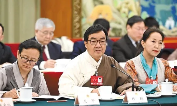 3月5日,全國人大常委會副委員長洛桑江村參加十四屆全國人大三次會議西藏代表團(tuán)審議,與代表們共同審議政府工作報(bào)告。