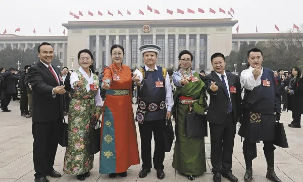 3月10日上午,北京人民大會堂前,紅旗獵獵、微風(fēng)習(xí)習(xí)。26名住藏全國政協(xié)委員與2100多名全國政協(xié)委員再次匯聚這里,出席全國政協(xié)十四屆三次會議閉幕會。
