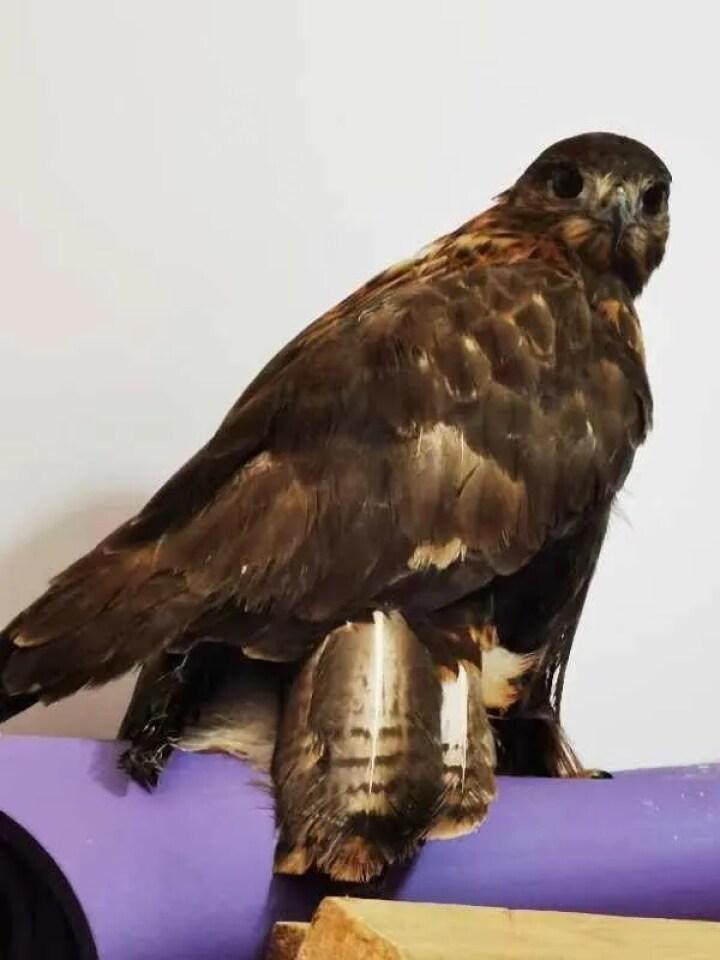 泉灣保護(hù)站工作人員接到電話第一時(shí)間前往救助,經(jīng)現(xiàn)場(chǎng)初步確認(rèn),受傷的是一只國(guó)家二級(jí)保護(hù)野生動(dòng)物大鵟。經(jīng)工作人員仔細(xì)檢查,發(fā)現(xiàn)大鵟左翼輕微受傷,雨水浸濕無法行動(dòng),隨即將其帶回保護(hù)站,并上報(bào)共和管理分局及青海湖國(guó)家級(jí)自然保護(hù)區(qū)管理局。經(jīng)過保護(hù)站工作人員的精心喂養(yǎng),大鵟體能逐漸恢復(fù)。為了確保受傷的大鵟完全康復(fù),泉灣保護(hù)站工作人員將其移交給青海湖國(guó)家級(jí)自然保護(hù)區(qū)管理局工作人員,送至青海野生動(dòng)物救護(hù)繁育中心進(jìn)行進(jìn)一步治療,待大鵟傷勢(shì)痊愈、符合放生條件后再行放歸。