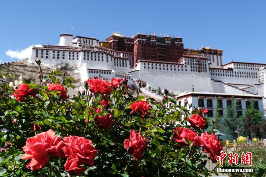 拉薩布達(dá)拉宮腳下綠化帶中盛開的月季。