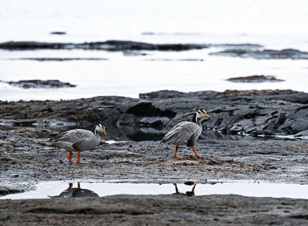 這是2024年5月26日在長(zhǎng)江源頭地區(qū)的班德湖畔拍攝的斑頭雁。新華社記者 張龍 攝
