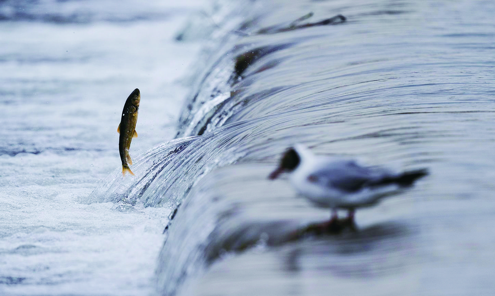 清澈的泉吉河,靜靜地流向青海湖,河道里的湟魚與湍急的水流競賽,在縱身一躍的起落間拾級而上,還有的湟魚靜靜蟄伏在水底躲避“天敵”,但依舊有棕頭鷗和鸕鶿低旋在水面上不時啄向水中,“魚鳥大戰(zhàn)”的精彩不時被河岸上的長鏡頭抓拍。“魚多了鳥就多了,青海湖變得更有生機了!”守護湟魚多年的張小云不由感慨。