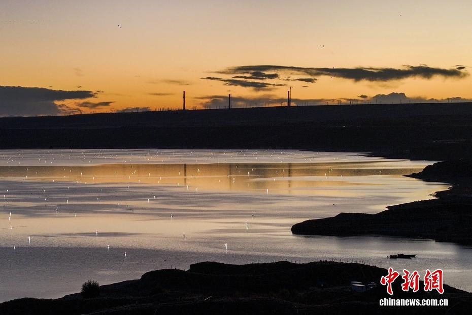 圖為航拍九曲里湖面漁燈。(無人機(jī)照片)中新社記者 薛蒂 攝