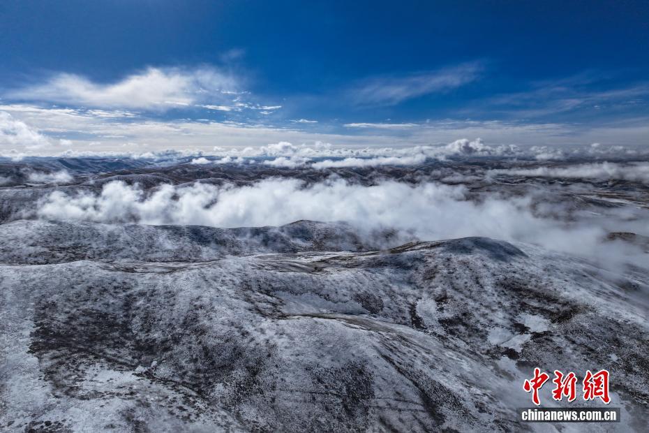 10月17日,一場降雪過后,平均海拔4200米以上的青海省果洛藏族自治州達日縣出現(xiàn)云海景觀,從空中俯瞰,落雪的山巒在云霧中若影若現(xiàn),宛如壯闊水墨畫卷。