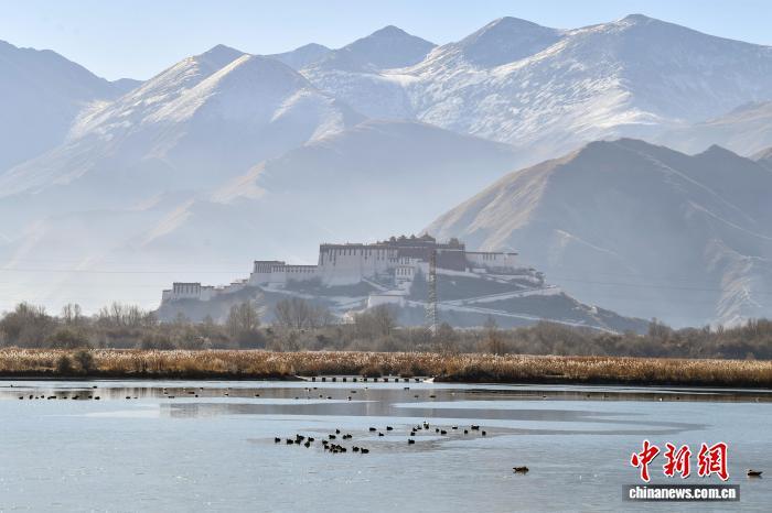 2025年12月9日,世界海拔最高的城市內(nèi)陸天然濕地——拉薩拉魯濕地國家級自然保護區(qū)盡顯冬日盛景。這片總面積12.2平方公里的“拉薩之肺”,初冬時節(jié)蘆葦泛金,赤麻鴨、斑頭雁等候鳥在此嬉戲覓食。遠處布達拉宮巍然矗立,周邊雪山皚皚,自然生態(tài)與人文景觀交相輝映,構(gòu)成一幅兼具壯闊與靈動的高原畫卷,彰顯著拉薩人與自然和諧共生的生態(tài)之美。圖為拉薩市民在拉魯濕地晨練。中新社記者 貢嘎來松 攝
