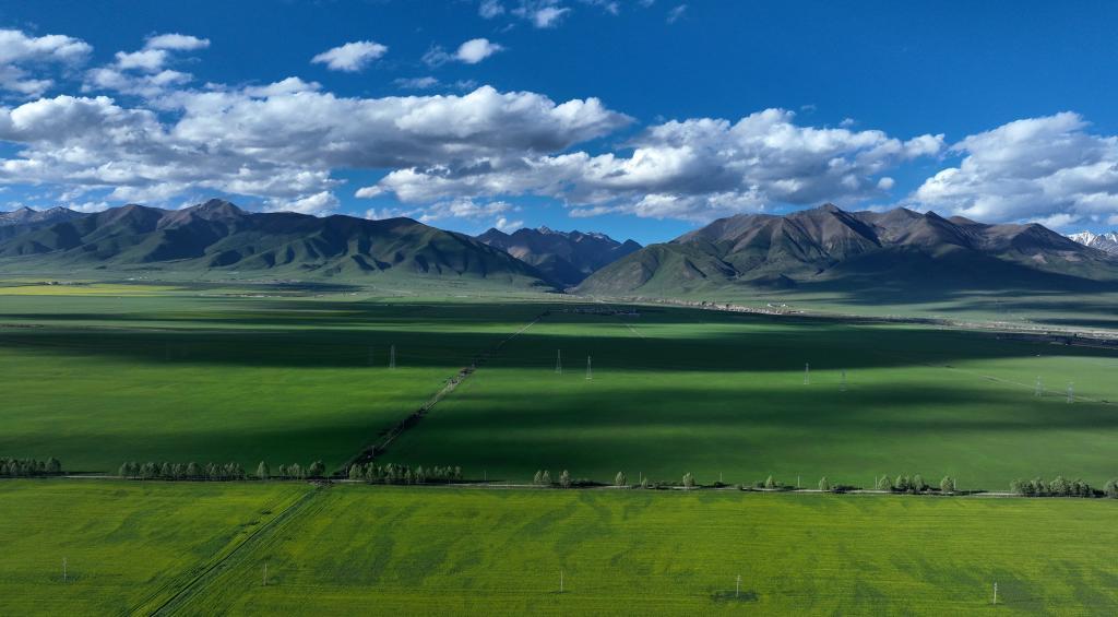 這是7月3日拍攝的門源縣境內(nèi)風(fēng)光(無人機(jī)照片)。新華社記者 張宏祥 攝