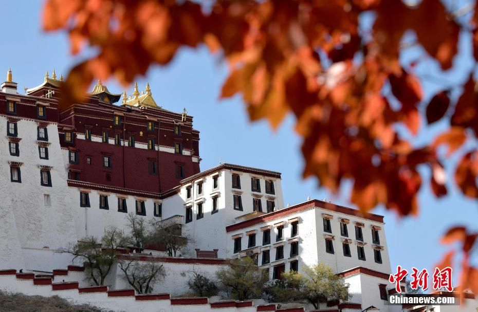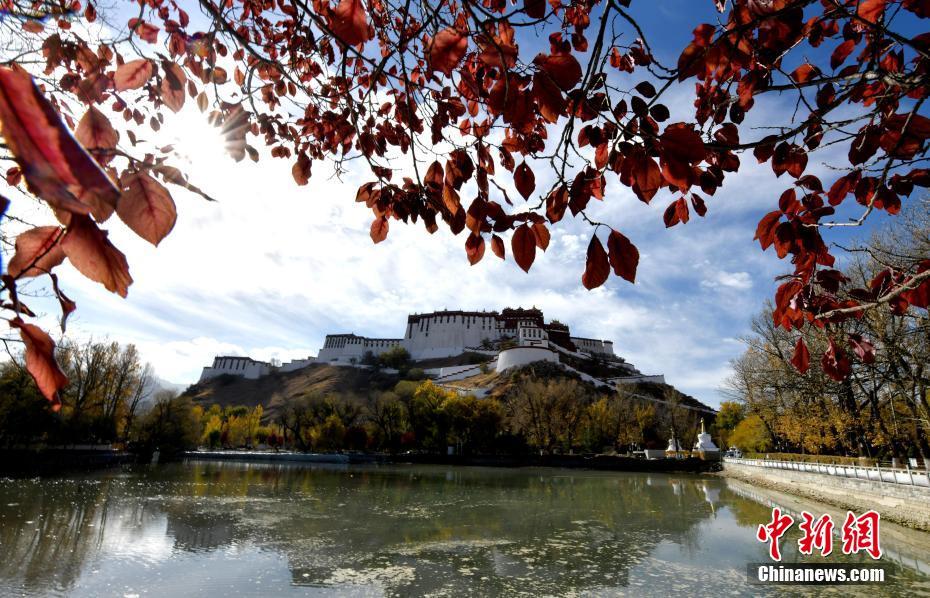 圖為初冬拉薩,布達(dá)拉宮在周圍紅黃樹葉的映襯下色彩斑斕。李林 攝
