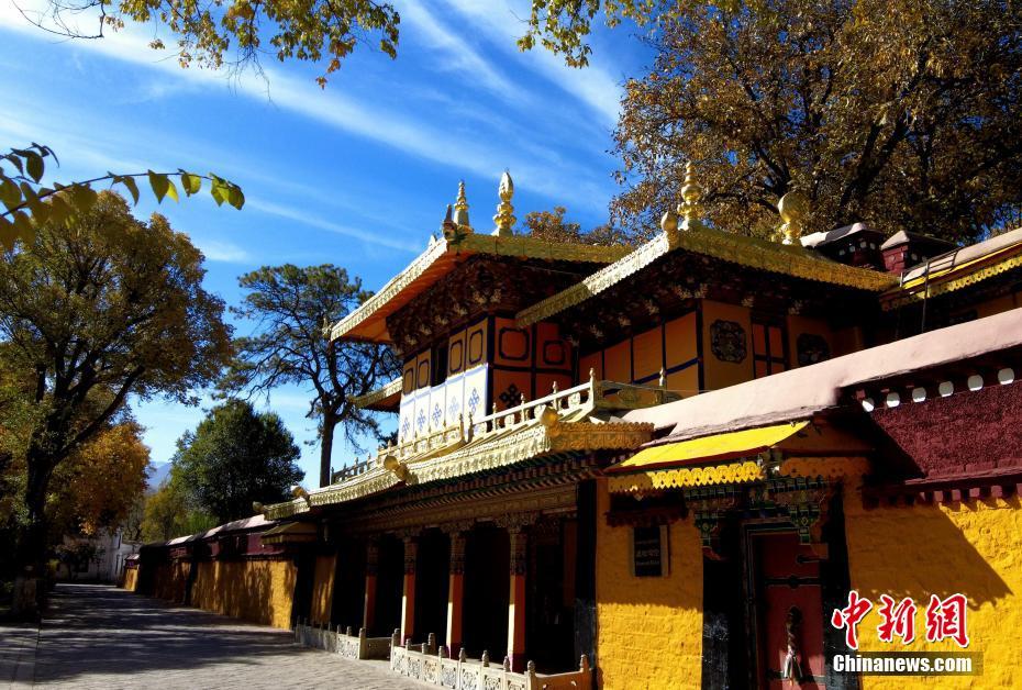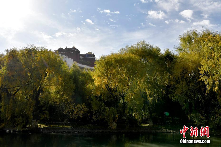 圖為初冬拉薩,羅布林卡在周圍紅黃樹葉的映襯下色彩斑斕。李林 攝