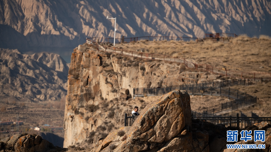 游客在龍羊大峽谷懸崖攬勝區(qū)游玩。新華網(wǎng) 潘彬彬 攝