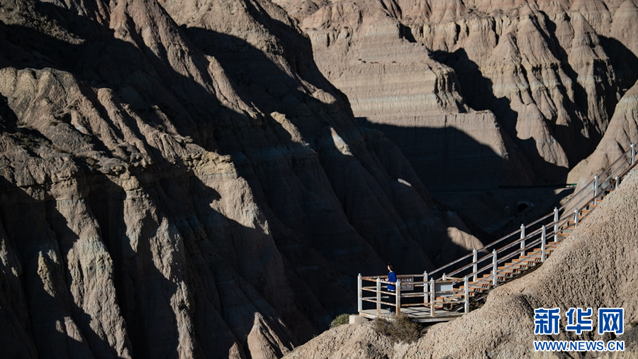 游客在龍羊峽土林地質(zhì)公園景區(qū)游玩。新華網(wǎng) 潘彬彬 攝
