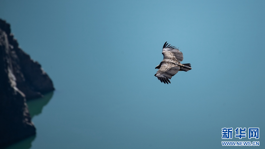 龍羊大峽谷內(nèi),一只兀鷲飛過。新華網(wǎng) 潘彬彬 攝