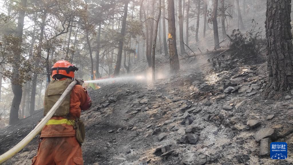 3月18日,消防員在雅江縣森林火災(zāi)3號火場火線位置清理余火及煙點(diǎn)。新華社 舒余祥 攝
