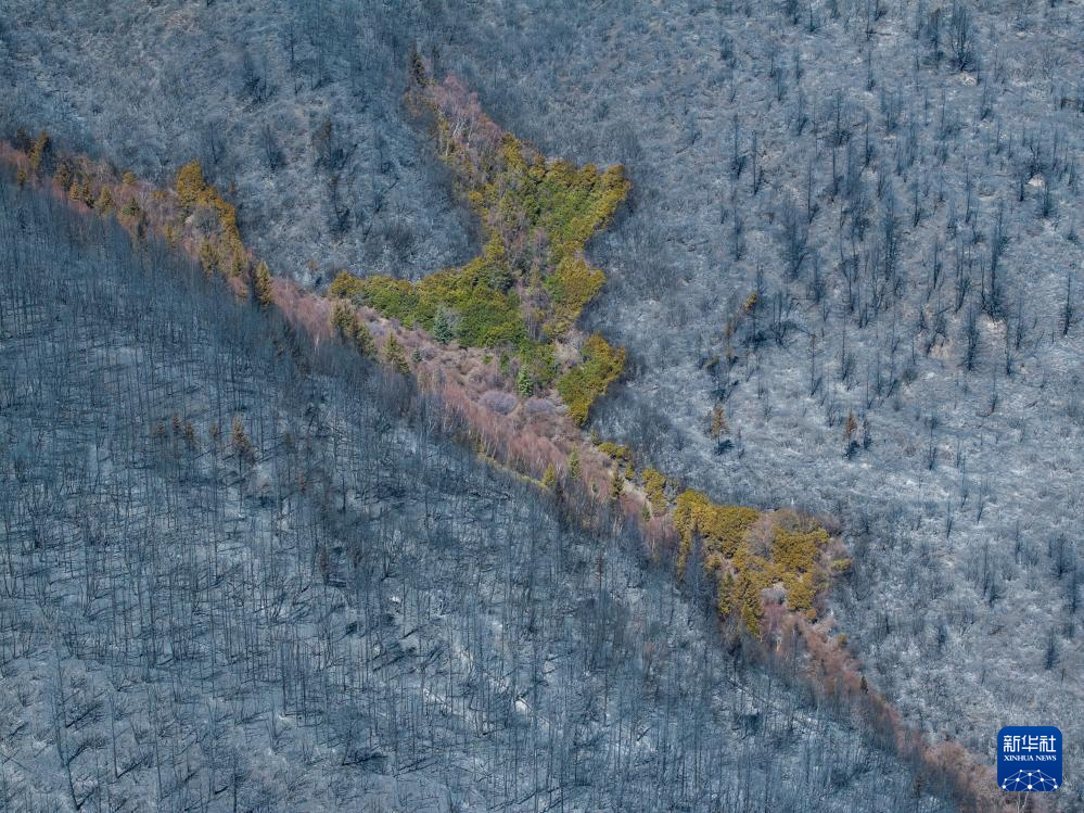 這是3月18日在雅江縣河口鎮(zhèn)拍攝的一處過火的森林。新華社記者 王曦 攝