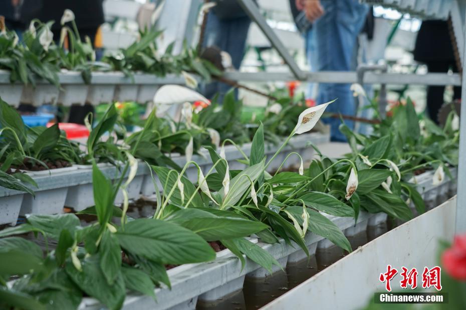 圖為該基地無土栽培的花卉。馬銘言 攝