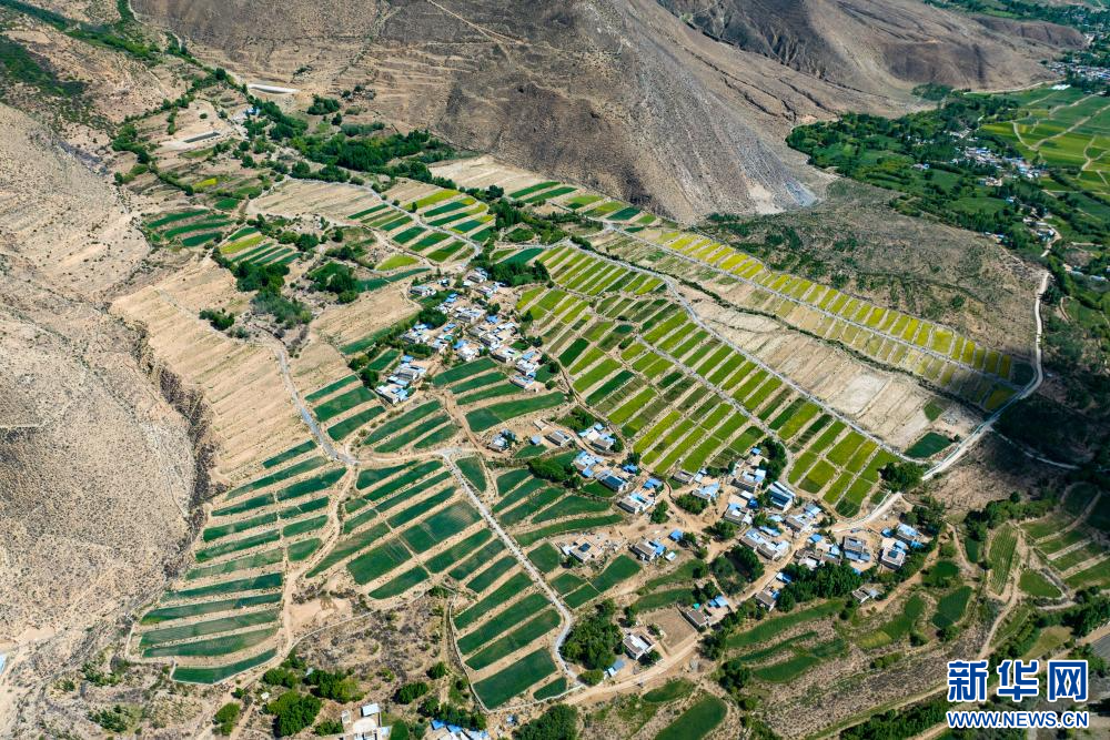 6月23日在西藏山南市乃東區(qū)境內(nèi)拍攝的田園風(fēng)光(無人機(jī)照片)。新華網(wǎng) 旦增努布 攝