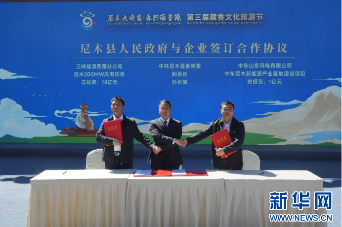 開(kāi)幕式上,尼木縣委常委、副縣長(zhǎng)孫長(zhǎng)策與中國(guó)三峽新能源集團(tuán)股份有限公司西藏分公司、中車山東風(fēng)電有限公司、拉薩明陽(yáng)新能源有限公司和華電新能源有限公司的代表完成簽約儀式,達(dá)成互利共贏的合作關(guān)系。 ??