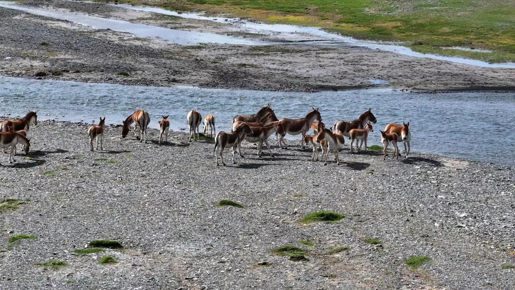 圖為8月9日,在青海省玉樹藏族自治州曲麻萊縣境內(nèi)拍攝的藏野驢(無人機(jī)照片)。新華社 昂江 攝