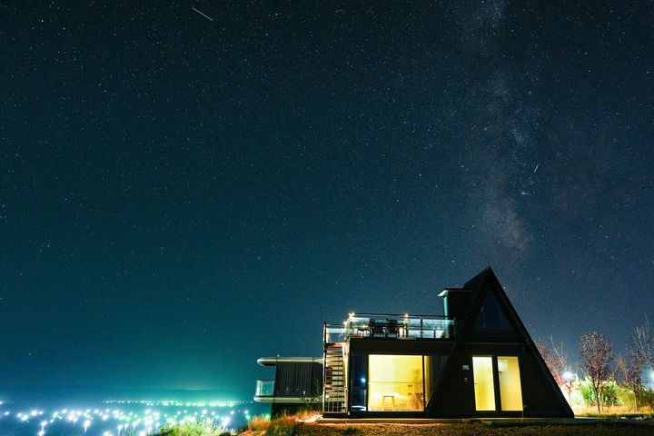 夜色漸濃,水面無數(shù)漁火與漫天繁星交相輝映,猶如星河倒轉(zhuǎn)。游客高女士和同伴在崖邊的“星空房”里相互拍照:“比手機上看到的壯觀太多了,一下子就聯(lián)想到了那句詩——醉后不知天在水,滿船清夢壓星河?!?/p>