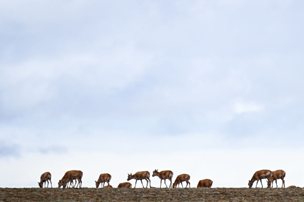 2024年5月27日,藏羚羊在可可西里五道梁地區(qū)遷徙。新華社記者 張龍 攝