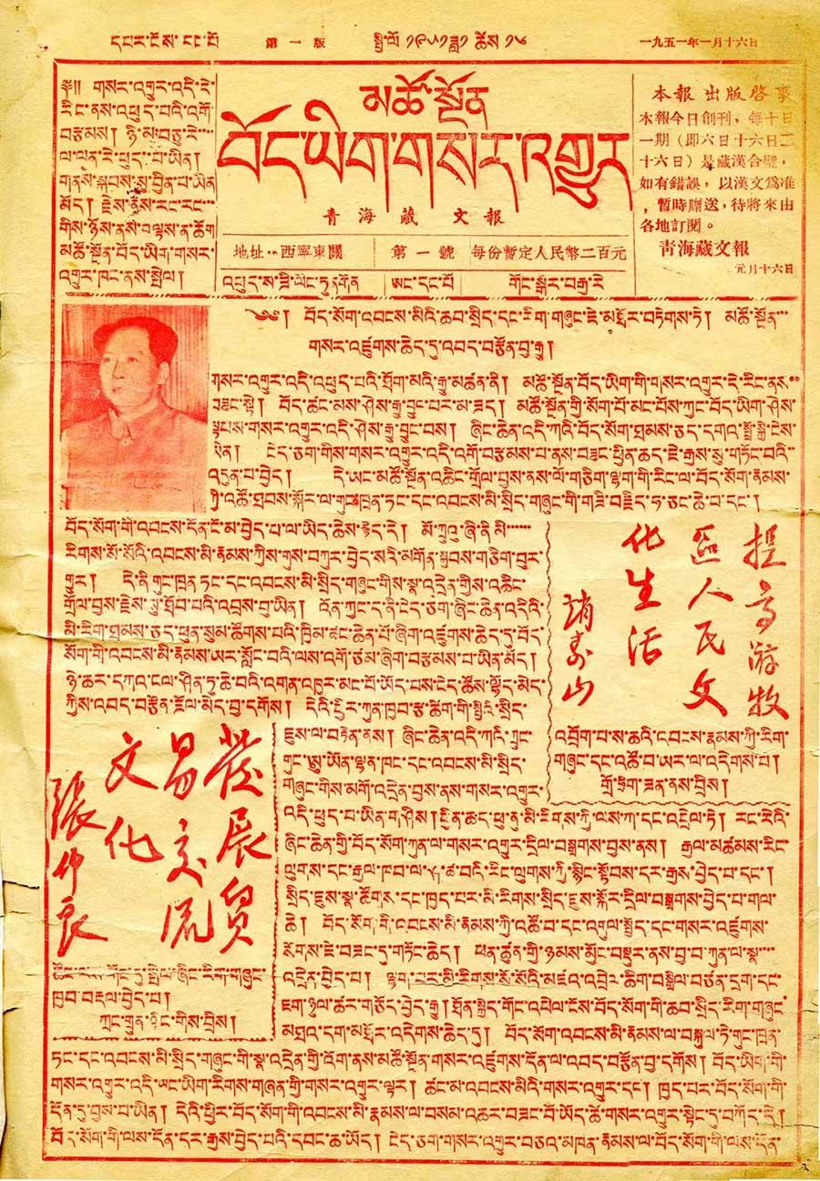 1951年創(chuàng)刊初期為旬刊,四開四版,藏漢文對照,全部贈閱。同年12月1日改為周刊。